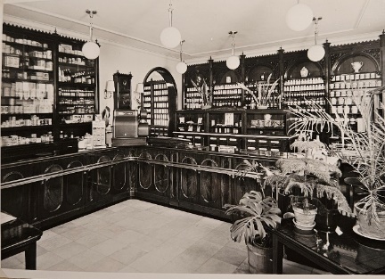 Der Fußboden im Inneren der Offizin wurde gleichzeitig tiefer gelegt. Dadurch fielen die drei Stufen zum Eingang weg. Offizin und Laboratorium wurden modernisiert.