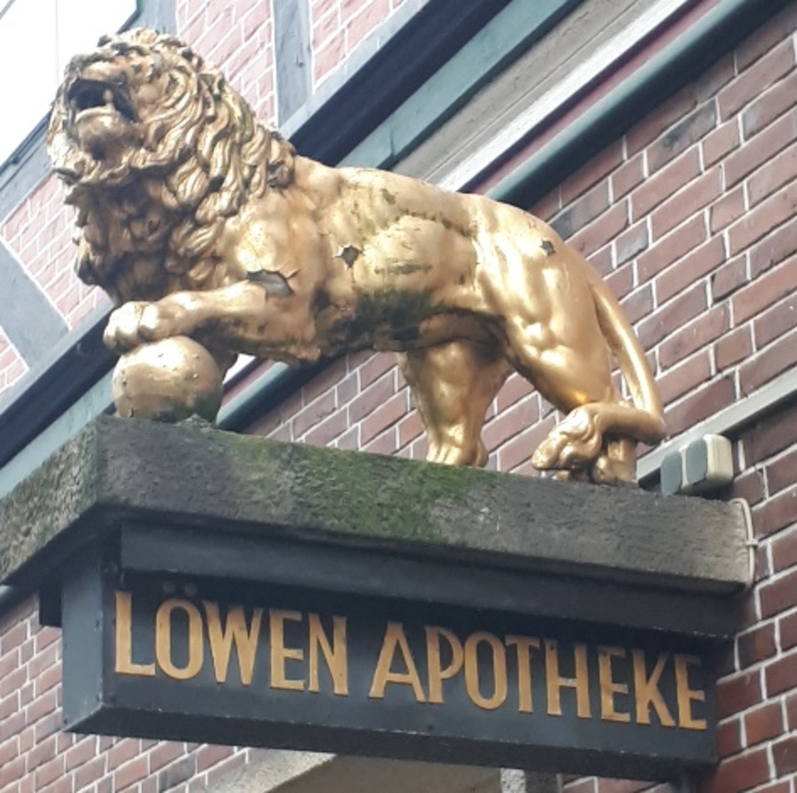 In der Offizin – also dem Verkaufsraum – befindet sich auch heute noch eine von einem Stader Handwerker 1867 angefertigte Einrichtung aus massivem Mahagoni-Holz mit alten Standgefäßen (Bild rechts).
